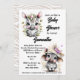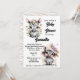 A fun and trendy 3D ai generated graphic featuring cute and adorable baby zebras smiling sweetly framed by pastel coloured floral flowers. One is wearing a wide brimmed hat and the other has soft thistle flowers around her. They are set against a white background that has custom script and decorative text templates on it for your custom wording. The back has pastel beige and white zebra stripes print on it. These are ideal for any jungle, safari, wild animal or wildlife summer baby shower event. Instant downloads include both the front and back of the invitation.