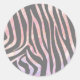 Zebra Light Grey and Pink Print Classic Round Sticker