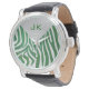 Zebra Monogram Green and White Print Watch