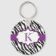 Zebra Monogram Purple Ribbon Keychain