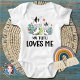 The Zebra My Tutu Loves Me design Baby Bodysuit is the perfect way to show your love for your grandchild. With a funny design and a sweet message, this bodysuit is sure to make the grandparents smile. The bodysuit is made of soft, high-quality cotton and features a snap closure for easy dressing. The custom design is available in a variety of sizes to fit any child. Order your Zebra My Tutu Loves Me design Baby Bodysuit today!