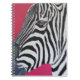 A notebook with a zebra design on it with a lovely pink background and on it is a zebra.