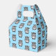 Party favour box shown in light blue in a gable style with a cute cartoon zebra.