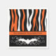 A zebra stripes pattern in Halloween colours of black, orange, and white with a frilly white vampire bat and space for your text on paper napkins. Personalise with your own text.