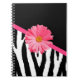 Zebra Pattern Girly Pink Daisy Spiral Notebook