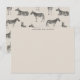 This flat notecard set features a clean white card with a personalised name in spaced capital letters at the top, paired with an allover illustrated pattern of full-body zebras in various poses on a warm sandy background on the back. The black and white stripes against the neutral ground make it feel graphic and sophisticated. A great pick for a zebra lover, a safari fan, or anyone who wants their correspondence to stand out.
