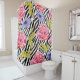 Zebra Pattern Pink Flowers and Stripes Shower Curtain
