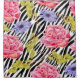 A trendy black and white zebra stripes print with a bold and beautiful pink and purple peony floral pattern.