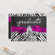Zebra Pattern Pink Ribbon Diamond Gem Chalkboard Graduate Script