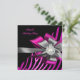 Zebra Pink Black Silver Bow Pearl Birthday Party Invitation