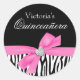 Zebra Pink Bow Diamond Quinceanera Classic Round Sticker