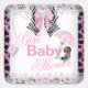 Zebra Pink Girl Baby Shower African American Square Sticker