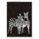 A digital painting of two Zebras in a playful manner, with a brown striped background.