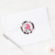 A sticker featuring an illustration of a hot pink baby carriage inside a matching circle shaped frame. Zebra Print background. Look for matching items in the "Baby Shop" section of The Pink Schoolhouse store.