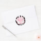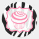 A sticker featuring a background of zebra print.  Pink and white cupcake inside pink frame with sheer centre.  Look for matching invitations at Jill's Paperie.
