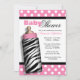 Zebra Print Baby Bottle Pink Baby Shower Invitation