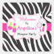 Decorate your Pamper Birthday Party table with this amazing Paper Sticker featuring a zebra print background with a pink band through the middle and an ornate frame in the centre. The text can be changed to suit your own requirements.