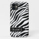 Custom printed iPhone 5 case with a black & white zebra print pattern design, personalised with your name over a black arrow tag print. (Recommend, in most cases, 10 characters or less for the personalisation to fit properly in the design.)