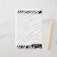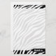 Custom printed 5.5" x 8.5" stationery with a black & white zebra print pattern design, personalised with your name over a black arrow tag print.