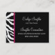 Bold, zebra print business card with pink highlight. 5 editable fields make this a very flexible template.