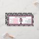 Zebra print background with 3D-look lace trim border and elegant chic two tiered cake gift certificate for small bakery business.