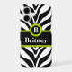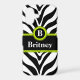 © 2012 Socialite Designs. Fun and vibrant zebra pattern with lace, monogram and name area Case Mate iPhone 4 Tough case. Easy to customise -- just replace the existing text with your own. Choose from three different case styles.
