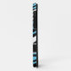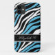 Stylish custom iPhone 5 case personalised with your name, and designed with a zebra print pattern with black, white, and blue zebra stripes.