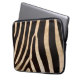 The sleeve is made of nice feeling material and seems very durable. I'm not sure how easy it'll be to clean, but the construction seems sound and the fabric is quick thick. I also like the double zipper. The printing is lovely and appears durable. The white on black contrast is nice, and the design very elegant.