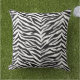 This outdoor throw pillow is shown in a exotic animal zebra print design.