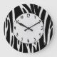 Custom Wall Clock has a fun black and white animal print stripes pattern with matisse font clock face.