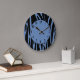 Custom Wall Clock has a fun black and blue animal print stripes pattern with a matisse font clock face.