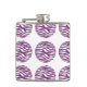 Cute and trendy Zebra Print Polka Dots Flask. This design features fun zebra print pattern circles in purple and white. Text can be added to this design to give it a personal touch.