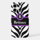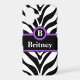 © Socialite Designs. Fun and vibrant zebra pattern with lace, monogram and name area Case Mate iPhone 4 Barely There case. Easy to customise -- just replace the existing text with your own.