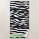 Zebra Print, Stripes, Black And White, Your Name Beach Towel