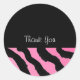 Pink and black zebra print pattern accents this thank you sticker.