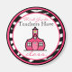 A magnet for teachers featuring the logo of The Pink Schoolhouse inside a circle shaped zebra print frame with pink trim. Black and pink text reads "Third Grade Teachers have class."