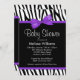 A trendy black and white zebra pattern with a purple bow graphic is featured on this fun baby shower invitation. Perfect for a little girl baby shower! Designs are printed illustrations/graphics - NOT ACTUAL RIBBON.