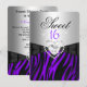 Zebra Purple Silver Sweet 16 Sixteen Birthday Invitation