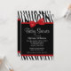 A trendy black and white zebra pattern with a red bow graphic is featured on this fun baby shower invitation. Perfect for a little girl baby shower!