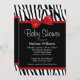 Zebra Red Printed Bow Baby Shower Invitation