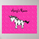 Pink stars with cute zebra bedroom poster perfect for a girls bedroom
