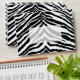 Black and white fashion zebra skin print shows the back where the stripes intersect in the pattern. Provides a nice diagonal pattern and a unique zebra animal wild safari african theme backdrop. All Designs Copyright © www.CuteComfy.com
