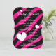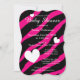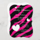 Elegant zebra stripe baby shower invitations. Custom pink and black party invites with little white hearts. Wild exotic animal theme design for girly glam girls. Customise bracket cut out shape. Beautiful stylish script typography with cute love icons. Personalizable template with RSVP and registry line. Sweet babyshower cards for your little diva or princess. Paper designs for pregnant women / mum to be.