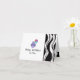 A modern design featuring a black and white zebra stripe along the side of card. Little birdie holding colourful balloons...The words can be changed as desired.