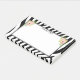 Modern black zebra stripes and pink bouquet with leaves. Optional monogram