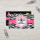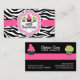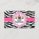 © 2013 Socialite Designs. Our sassy zebra stripes bakery business card has three cupcakes, in a whimsical polka-dot banner, a zebra pattern background and pink ribbon. All design elements can be moved, resized or deleted to suit your bakery business. Just replace our template text with your business information.