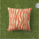 An updated take on a classic animal print outdoor pillow - zebra stripes in deep mandarin orange on a lighter, sherbet orange background