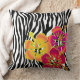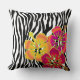 Zebra Stripes pattern + hibiscus flowers Cushion