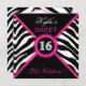 Zebra Sweet Sixteen Pink Lace Bling Invitation