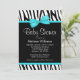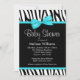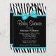 Zebra Teal Blue Printed Bow Baby Shower Invitation